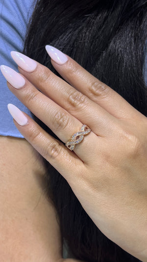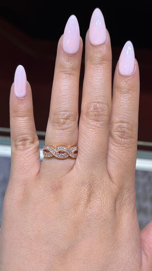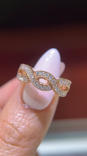 This stunning diamond band features a beautiful infinity twist half-way down the band. Big and stunning, this gorgeous band is made to accentuate the twist design. Perfect for twist lovers, and even better as a stand-alone piece for twisties.