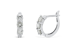 This alluring diamond hoop earring has an unmatched fiery brilliance. Each side holds 3 round brilliant diamonds, totaling a diamond carat weight of 0.83CT. The three diamonds are all facing forward to maximize the shine and sparkle. Beautiful prong set diamonds puts more emphasize with the gold and the diamond