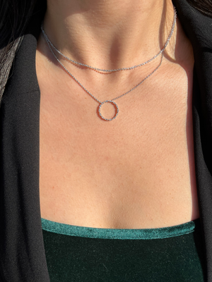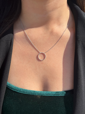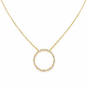 Our circle of life diamond necklace is a timeless, symbol of unity and eternal love. This classic design is refined to be set with baguette cut diamonds in order to reflect light with any and every movement. Whether you're in the search for a celebratory milestone gift, or want to treat yourself, this necklace can be worn alone or stacked with others to enhance its beauty. The necklace is a reminder of life's unbroken beauty and continuity of life, so don't forget to take a breather from time to time!