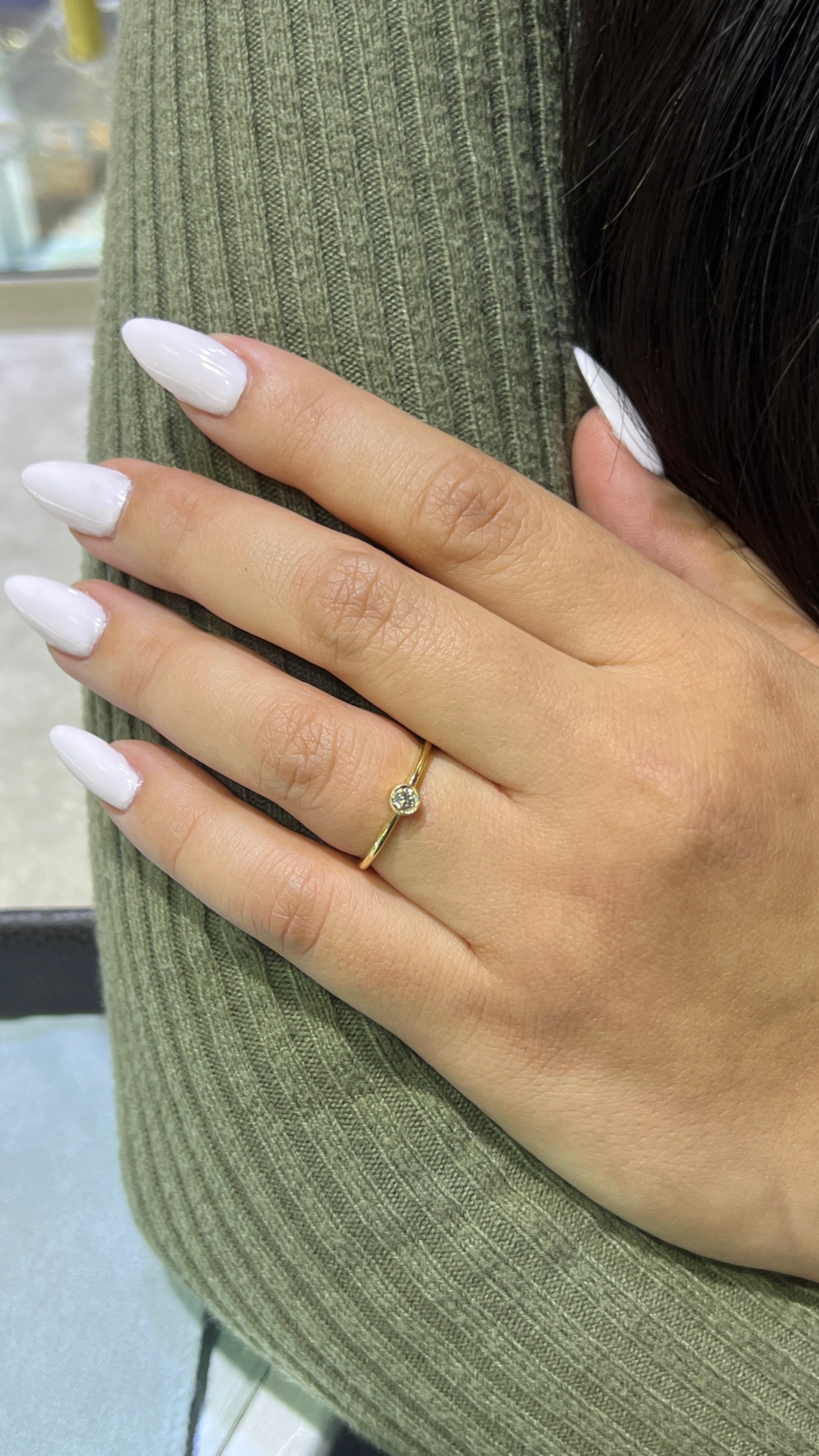This diamond band is simplicity done right. A single bezel-set diamond that feels both modern and effortless. With a 0.12ct center, it brings just enough sparkle for everyday wear while staying refined and easy to style. Its smooth bezel design makes it the perfect foundation piece to start your ring stack or wear solo for a clean, understated shine.