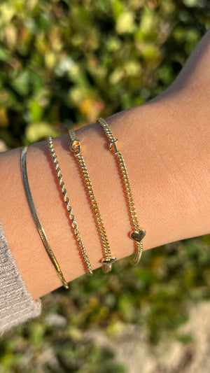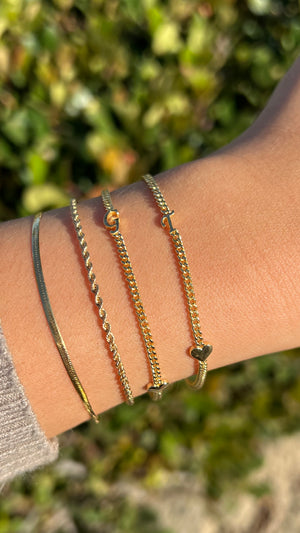 Extremely cute dainty gold bracelet that we are absolutely in love with! Custom made with any initial of your choosing, this gorgeous bracelet is definitely something everyone can wear with love! Made with a 2mm solid 14K gold cuban bracelet, this bracelet was made for everyday wear. The initial and charm are set horizontally, this keeps the bracelet dainty, and allows greater customizations when it comes to stacking with other bracelets.