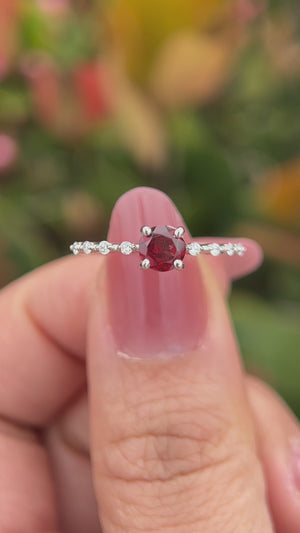 • Center Stone: 5mm (~0.60ct) Natural Round Garnet