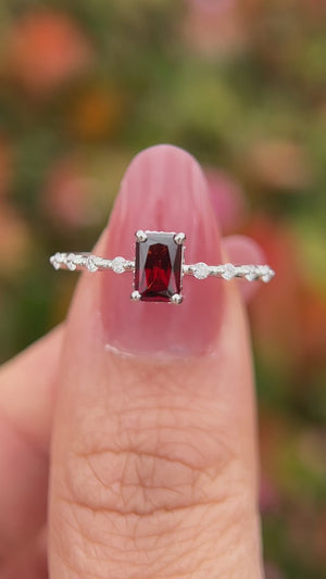 • Center Stone: 6x4mm (~0.50ct) Natural Radiant Cut Garnet