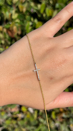 Single Diamond Cross Charm Bracelet 14K Solid Gold DFB005