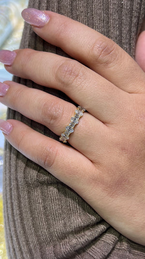 This dazzling oval diamond half eternity band features a row of brilliant oval cut diamonds set in a shared prong design that showcases each stone's unique sparkle. The yellow gold prongs delicately secure each diamond while allowing maximum light to pass through, enhancing their fire and brilliance. Each oval diamond is carefully positioned to create a seamless flow of sparkle around the entire band. Fashioned in 14k solid gold, this luxurious piece offers both durability and timeless appeal. The oval cut diamonds provide a softer, more feminine alternative to traditional round brilliants while offering exceptional sparkle. This versatile band works beautifully as a wedding ring, anniversary gift, or statement piece on its own. Perfect for those who appreciate classic elegance with a touch of uniqueness, this oval diamond eternity band combines sophisticated design with everyday wearability.