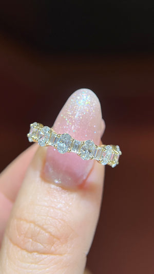 Alternating Oval and Baguette Diamond Band 14K Gold BAN198