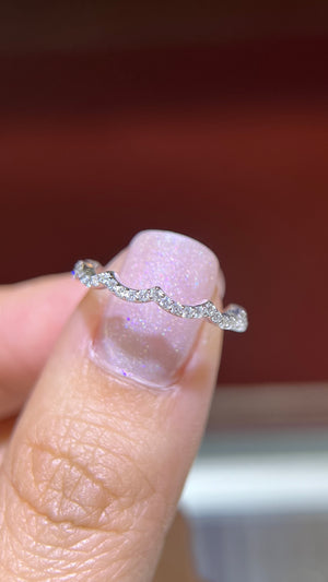 A unique twist on a timeless wedding diamond band. Crafted in 14K gold, round brilliant diamonds are beautifully set in a stunning French Pave setting. A perfect band that expresses individuality, this unique band features a wave design, paired with brilliant pave diamonds.