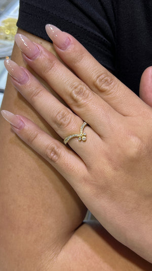 This diamond chevron band has four round milgrain bezel set diamonds positioned in a compass style that uniformly blends into a chevron band. Incorporating an older timeless style look with a modern style, this band will be popular for years to come. Fashioned in 14k solid gold, this band pairs well with an engagement ring or can act as a standalone piece.