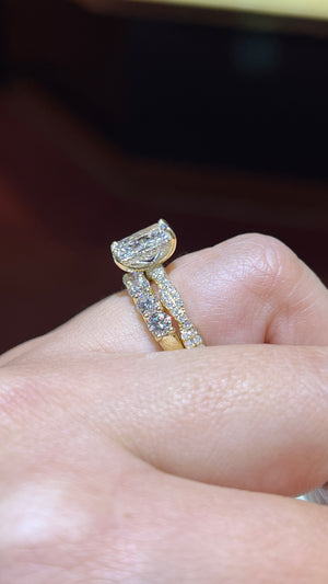 This band utilizes shared U prongs in order to minimize the amount of gold covering the diamond to ensure maximum brilliance. The round stones are large enough to be BOLD and can definitely be worn by itself.  Fashioned in 14k solid gold, this band can be worn with other bands, but is recommended to be worn by itself because the diamonds are so big. Pairing it with an engagement ring might be risky because this band might take the spotlight away from the engagement ring.