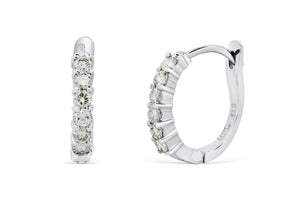 This tantalizing diamond hoop earring has an unmatched fiery brilliance. Each side holds 6 round brilliant diamonds, totaling a diamond carat weight of 0.58CT. The six diamonds are all facing forward to maximize the shine and sparkle. Beautiful prong set diamonds puts more emphasize with the gold and the diamond