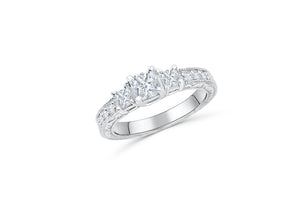 Three Stone Diamond Engagement Ring 0.98 ct tw 14K White Gold DENG051