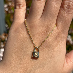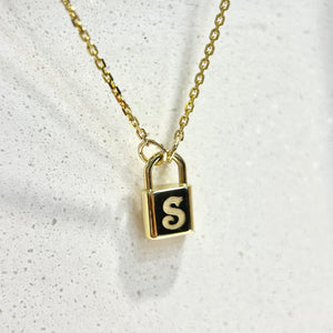 Made in warm, high-polish gold with a sleek black enamel background, the mini lock features an engraved “S” initial front and center. Whether it stands for your name, someone special, or just your style, it’s a piece that feels like yours from the start.