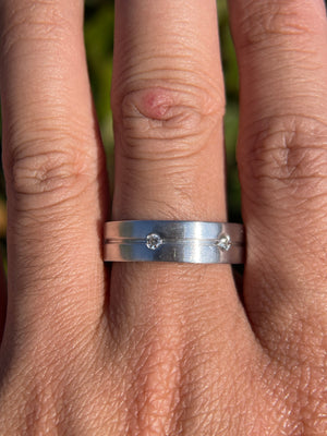 Brushed Center Line Bezel Diamond Wedding Band 14K Gold MR018