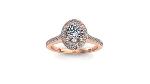 5.5mm (0.60ct) ForeverOne Round Moissanite Diamond Halo Cathedral Set Engagement Ring 14K MOENG016