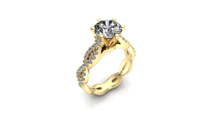 7mm (1.20ct) Stephanie ForeverOne Round Moissanite Diamond Twist Band 14K Gold Engagement Ring MOENG054