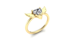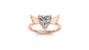 • Stylish and Trendy: The heart shaped moissanite is a very modern and unique center stone. Wings made of 14K gold surround the heart center stone to give a fresh breathe of individuality.