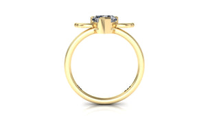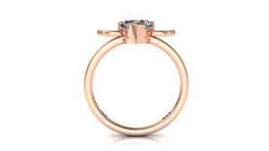 • Top Quality Centerstone: The center stone is fitted with a 5mm (0.50 carat) ForeverOne Pear Moissanite. The highest quality moissanite offered by CharlesandCovard.