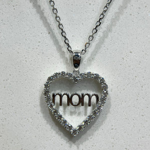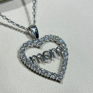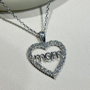 Celebrate the love that lasts a lifetime with this elegant diamond heart pendant—a timeless tribute to the word “Mom.” Crafted in luminous 14K white gold, the open-heart design gently frames the flowing script of "Mom" at its center, symbolizing care, strength, and unconditional love.