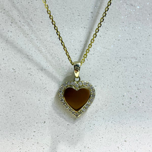 Handcrafted with care, this heart-shaped pendant features a warm, polished gold center framed by a delicate halo of brilliant diamonds. Whether you choose natural or lab-grown stones, each diamond is hand-set to ensure exceptional sparkle and symmetry. The result is a luminous piece that catches the light—and the heart—at every angle.