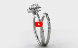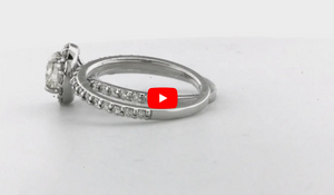A tantalizing diamond engagement ring that draws the eyes to the center. This mesmerizing engagement ring showcases a 0.95 carat round brilliant center diamond encased by a halo of round brilliant diamonds to intensify the style. Flanking the halo is a row of round brilliant diamonds set on the shank. A matching wedding band is included to deliver an additional round of dazzle.