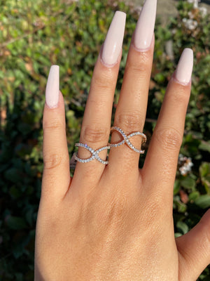 The middle of the "X" design is greatly emphasized due to the larger gaps on the edges. Beautiful dazzling round brilliant diamonds are set atop this "X-cross" design to place emphasis on the design. With a diamond weight totaling at 0.51 carats, this sleek modern diamond band is a fashion statement. The sleek design of this ring is easy to match with any outfit.