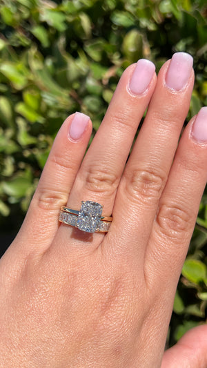 • Center Stone: Radiant 4.10ct E-VS1 Lab Diamond IGI