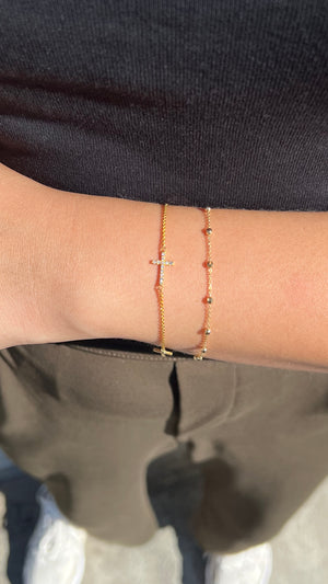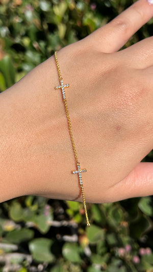 Triple Diamond Cross Charm Bracelet 14K Solid Gold DFB004