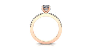 • Top Quality Centerstone: The center stone is fitted with an 8.0mm (1.90 carat) ForeverOne Moissanite. The highest quality moissanite offered by CharlesandCovard.