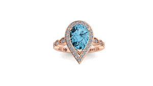 • More Power to the Sparkle: Sometimes bigger is better. A stunning pear shaped halo wraps around the pear cut blue topaz. Not only does this give the illusion of a larger center stone, but it also adds extraordinary brilliance to the sparkle.