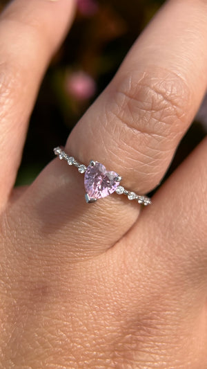 • Center Stone: 6mm Synthetic Heart Pink Ice (Cubic Zirconia)
