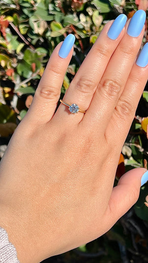 The Ava features a lab grown round diamond set in a 6-prong cathedral setting. The Ava uses a 1.4mm gold band that centers all the focus onto the diamond.