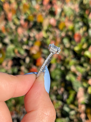 • Unmatched Beauty:The Jada is our classic pave diamond in a tiffany floating setting. The Jada is a setting with proportions that will match the size of the center stone. Jada uses a specific band thickness to make the entire ring proportional with a splash of beauty.