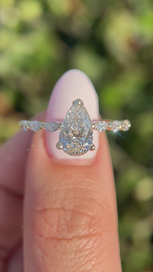 • Center Stone: Pear 1.56ct E-VS1 Lab Diamond IGI