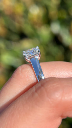 The Ava features a lab grown princess diamond in a stunning solitaire cathedral setting. The Ava uses a 4mm solitaire band to create a larger and thicker band style that feels complete in the center.